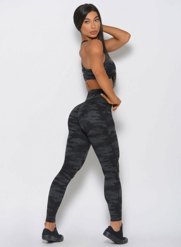Elevate your style with Bombshell Sportswear’s black camo booty scrunch leggings. Built to shape your curves and own every movement. Whether you’re training hard or chilling harder, these leggings deliver a contoured fit with bold camo edge.