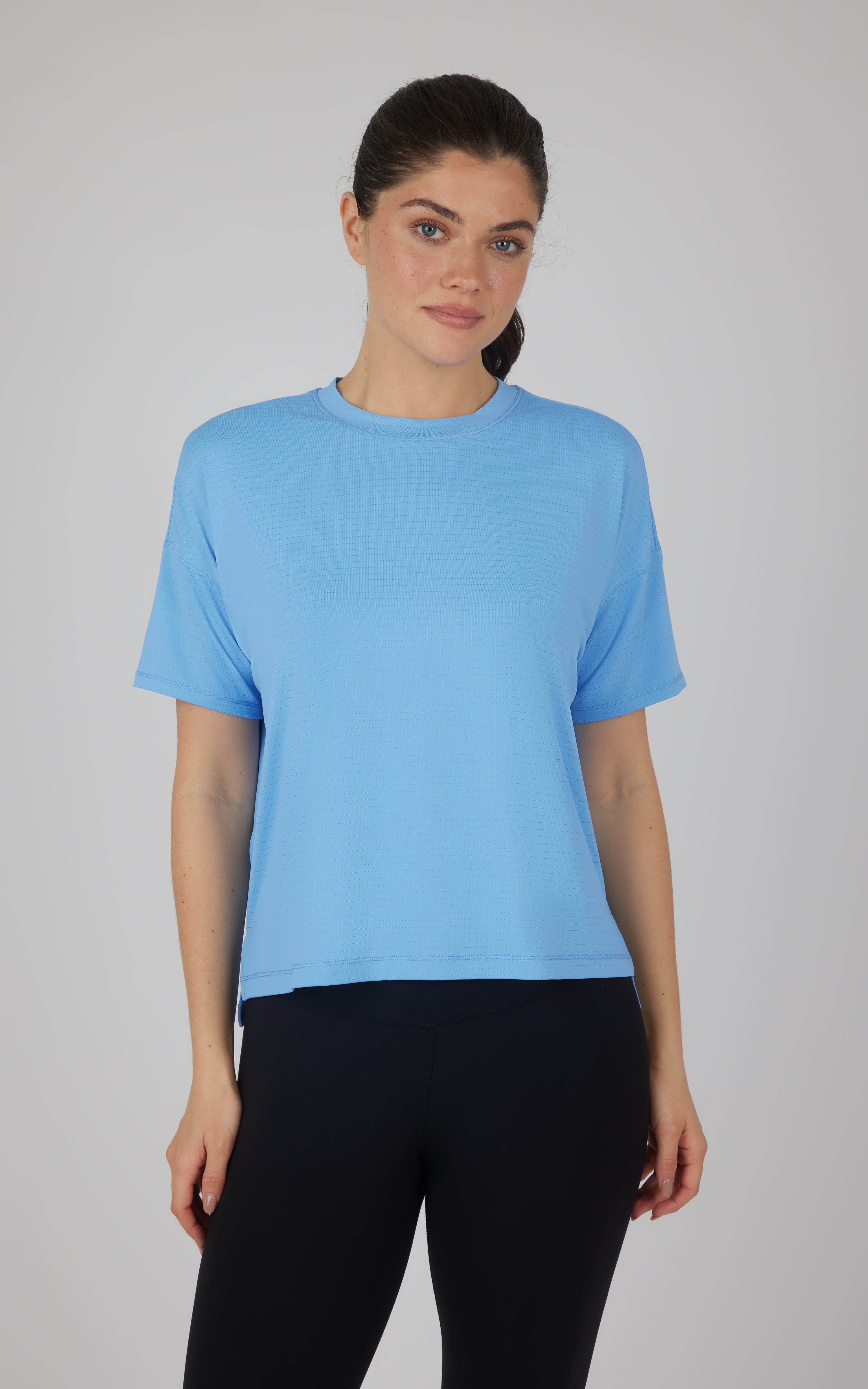 Our textured Training tee will go with all your workout wear or look great going out of the house or under a cardigan or jacket. This top is ideal for intense workouts, from yoga to Pilates, biking, and running.