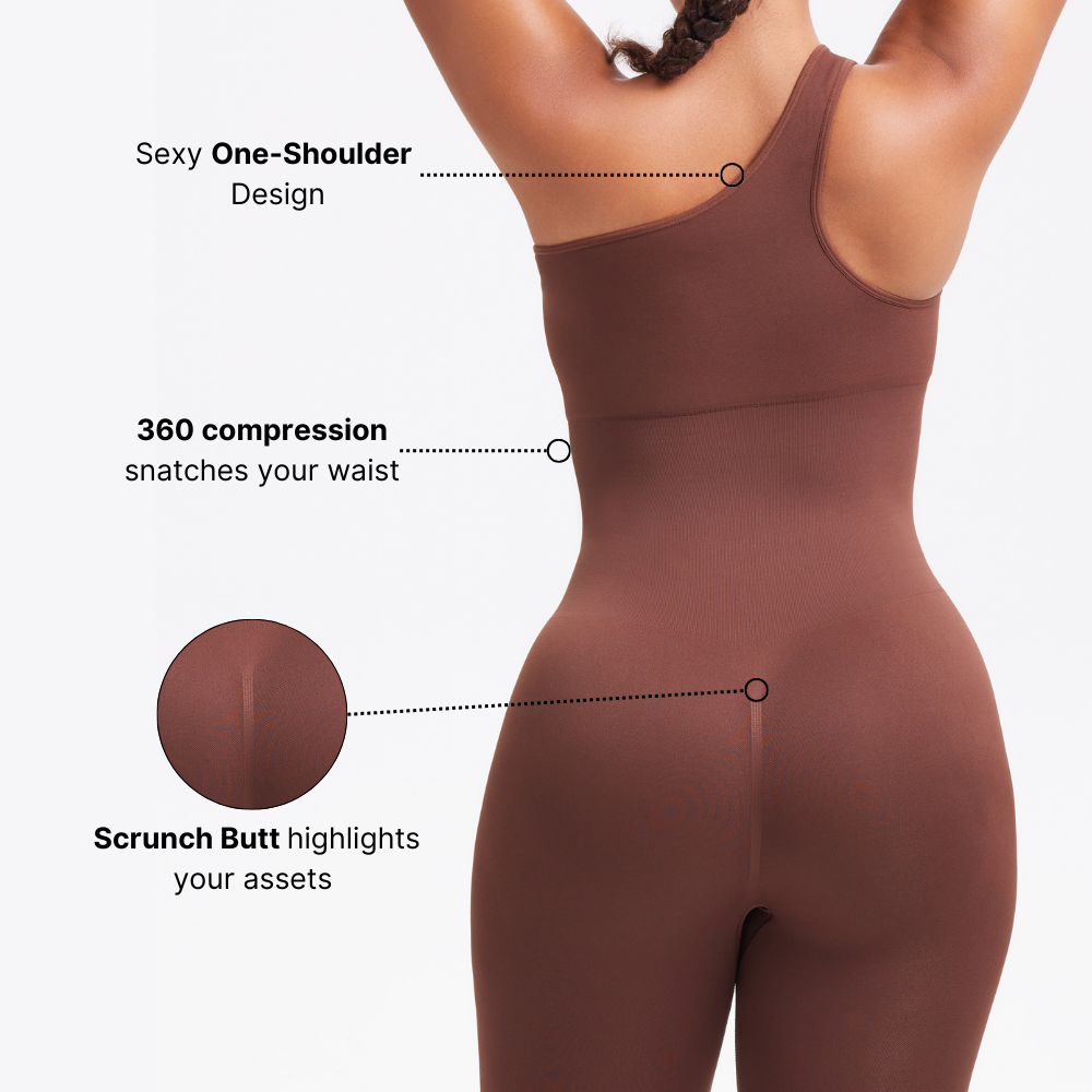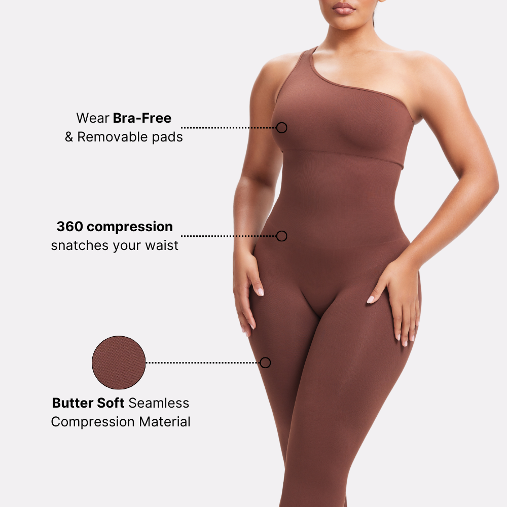 Slay all day in our Brand New One-Shoulder Flare Jumpsuit. Made with 360 degree shapewear material this jumpsuit will smooth everything out and have you looking snatched. It features a seamless compression fabric that hides all imperfections. The back features a butt ruching effect to highlight your assets.