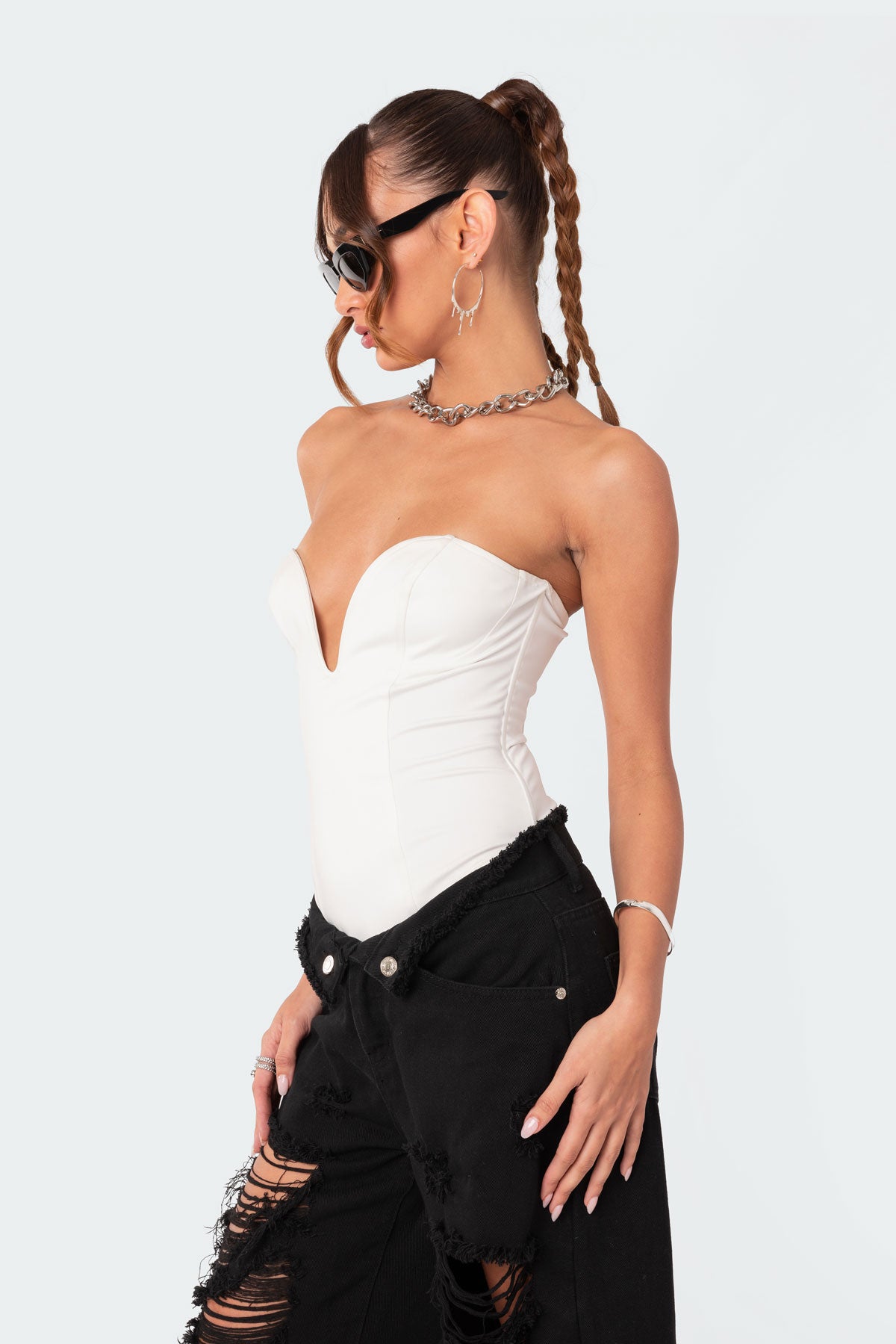 - Plunging sweetheart neckline