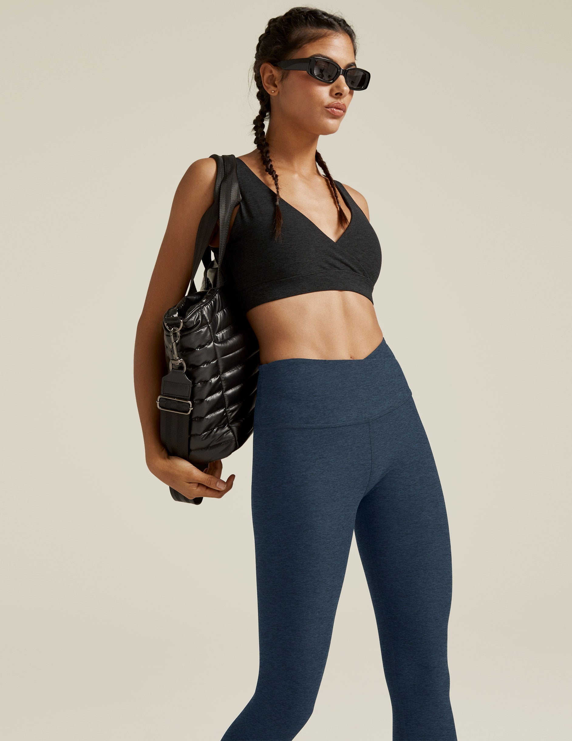 The curve-flattering yoga legging your friends keep talking about. Our signature active legging with overlap waistband, made from our incredibly soft Spacedye fabric. This pair of high waisted midi leggings is a fan favorite (and bestseller, season after season) for the way this unique waistband flatters all body shapes, and for its versatility: comfy and equipped for both working out, hanging out, traveling, and all-day wear. Pair with our matching Spacedye cropped tops and tanks to complete the look.